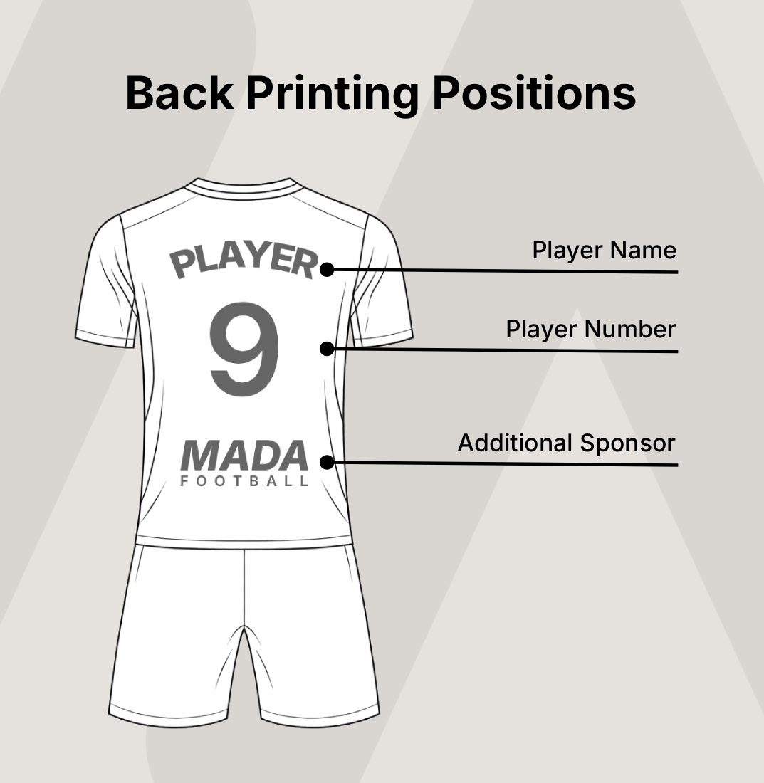 Clubs can also create a complete matchday kit with professional personalisation options. For example, teams can add player names, squad numbers or additional sponsors to match their club identity. As a result, every team can create a consistent and professional appearance on the pitch.